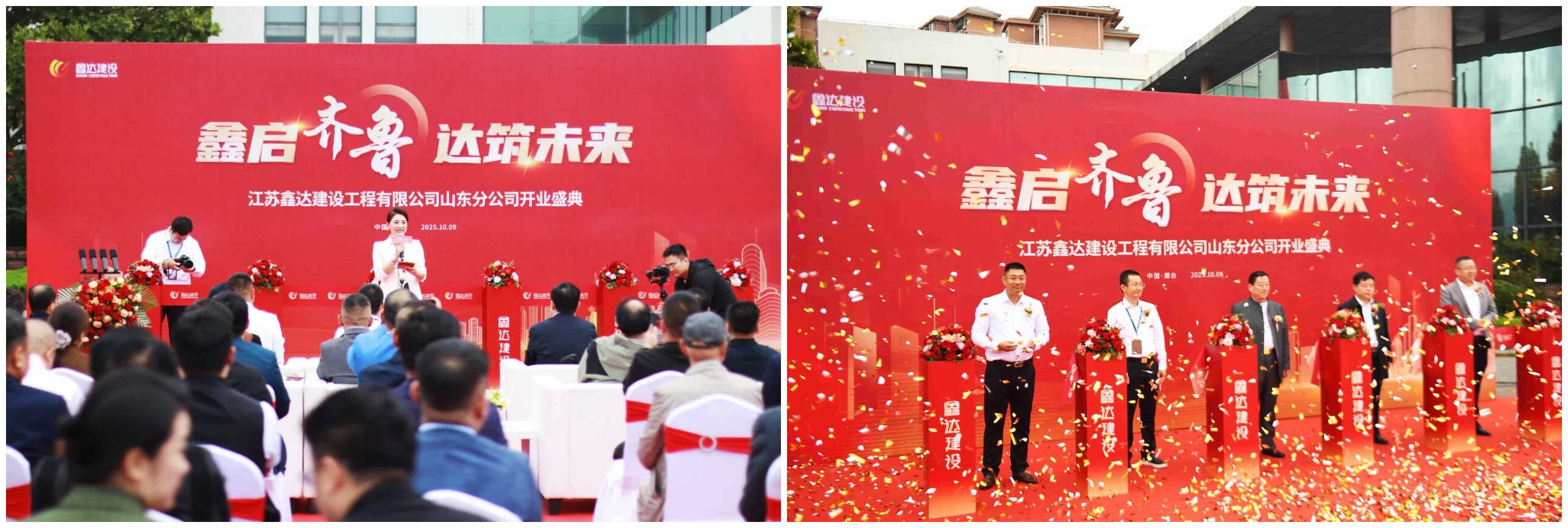 齊魯圣地,龍口啟航。2025年10月9日上午,江蘇鑫達建設工程有限公司山東分公司開業(yè)慶典活動在龍口市隆重舉行?;顒蝇F場彩旗飄揚,鑼鼓喧天,到處洋溢著喜慶氛圍。上午9時許,嘉賓陸續(xù)抵達現場,紛紛在簽到墻前留下珍貴印記,現場氣氛熱烈、秩序井然。